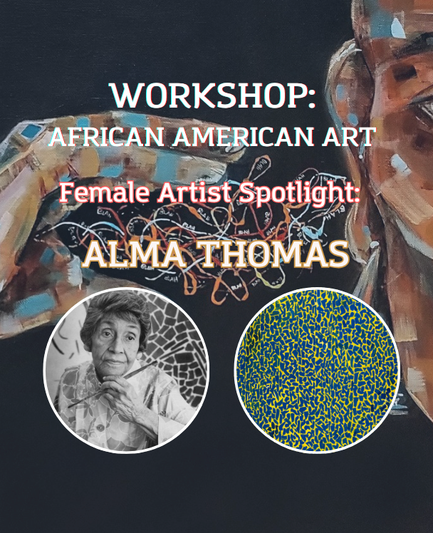 The current workshop is dedicated to to Alma Thomas, an African American artist. You will learn about her life, career, and techniques.